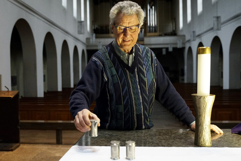 In der Katholischen Kirche gibt es in der Karwoche ein besonderes Ritual: Die Verteilung der heiligen Öle. Am Dienstag, 4. April 2023, feiert Stadtdekan Christian Hermes mit den Mesnerinnen und Mesnern in St. Eberhard eine Vesper. Danach werden in der Sakristei die Öle an alle Stuttgarter Gemeinden verteilt. Die Kännchen enthalten die geweihten Öle, mit denen Priester Menschen in wichtigen Lebensabschnitten salben. Das Chrisamöl für die Taufe von Kindern, das Krankenöl für erkrankte Menschen vor einer schweren Operation und das Katechumenenöl für Erwachsene, die sich taufen lassen möchten.