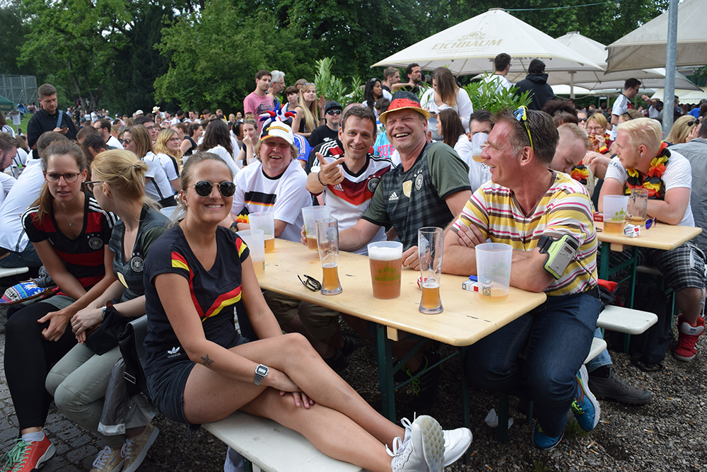Der Andrang im Biergarten von Sonja Merz ist groß. Viele Fans verfolgen das Spiel auf dem Boden sitzend.