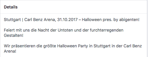 Die Agentur Abiagenten wirbt unter anderem in ihrer Facebook-Veranstaltung mit dem Slogan „Wir präsentieren die größte Halloween Party in Stuttgart“ (Screenshot: Facebook).