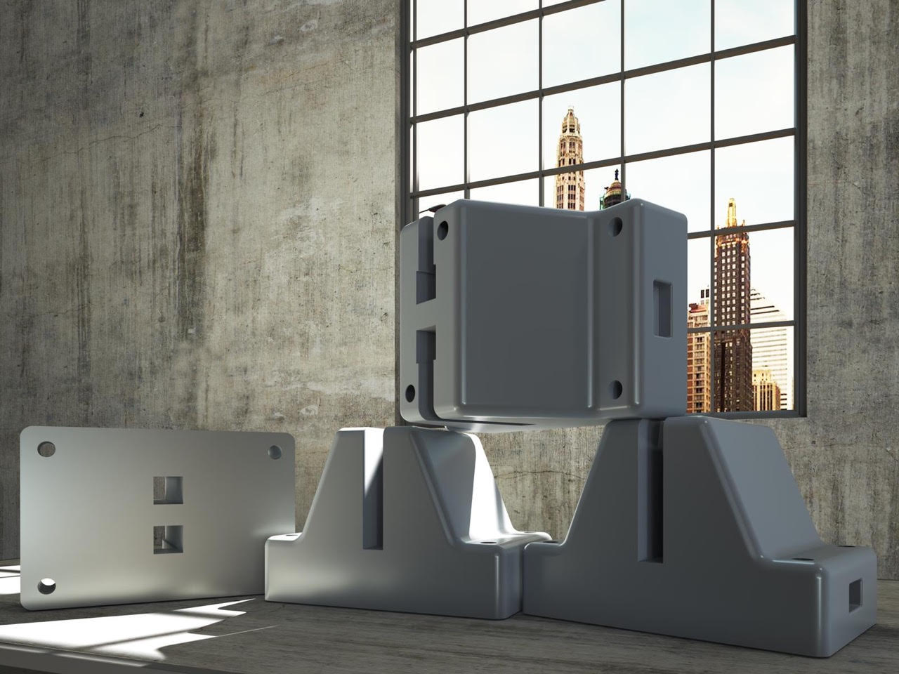 Die mobilen Bauzaun-Füße „Fencefoot“ sollen Baustellen und Festivals sicherer machen. (Foto: Fencefoot GmbH)