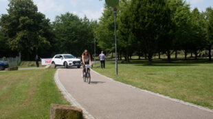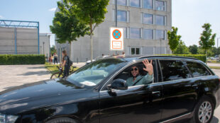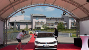 Der Ablauf ist gut durchgeplant mit der Intention, den Rückstau zur Straße so minimal wie möglich zu halten. Nach der Anmeldung über den Mitarbeiterparkplatz der Hochschule der Medien starten die Fahrzeuge nummeriert und in alphabetischer Reihenfolge. Vor dem Haupteingang erfolgt bereits der erste Boxenstopp. Gerüstet mit einem dort erhaltenen kleinen Präsent und einem Polaroid ziehen die Studierenden in oder auf ihren selbst gewählten Fahrzeugen weiter zur zweiten Station. Und zwar zur offiziellen Übergabe der Zeugnismappen. Auch Fabienne Maier* ist dabei. Die 32-Jährige hat das Bachelorstudium „Mediapublishing“ erfolgreich abgeschlossen. „Es war eine einmalige und sehr lehrreiche Zeit an der HdM. Ich durfte viele tolle Leute kennenlernen“, sagt die frisch gebackene HdM-Absolventin.