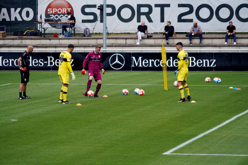 Das Torhüter-Trio um die neue Nummer eins Florian Müller beim ersten Training. (Foto: STUGGI.TV)