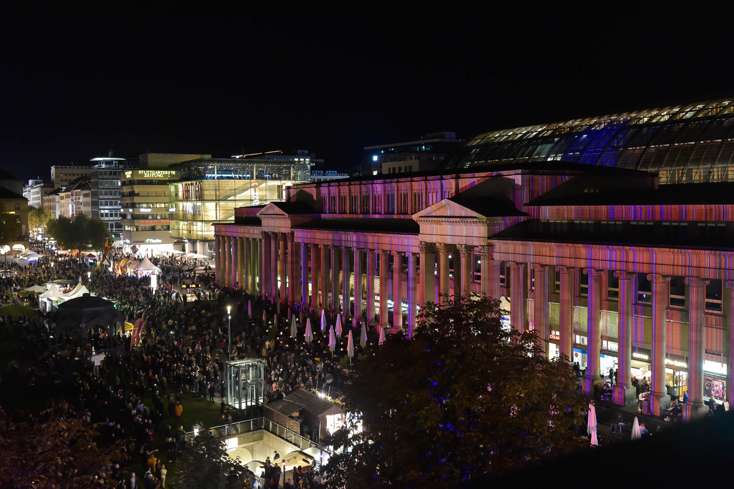 Die Lichtershow am Königsbau im Jahr 2019. Mit einer 3D-Mapping-Show soll das in diesem Jahr noch getoppt werden. (Foto: City-Initiative Stuttgart e.V.)