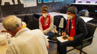 Noch gestern spielte in der Mercedes-Benz Arena der VfB gegen Bayern München, heute und morgen findet im Stadion jedoch eine große Impfaktion statt. Der VfB unterstützt die Impfoffensive der Stadt Stuttgart mit einer 24-Stunden-Impfaktion. Dafür wurden extra die Logen des Stadions zu Impfräumen umfunktioniert. Vor Ort waren auch der Vorstandsvorsitzende Thomas Hitzlsperger und Marketing-Vorstand Rouven Kasper, der sich auch direkt boostern ließ.