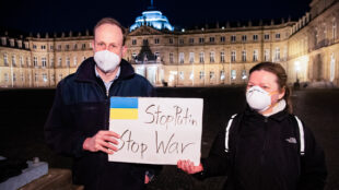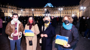 Mit dem Beginn der Demo gegen 19 Uhr wurde es plötzlich still rund um das Neue Schloss. „Wir würden uns wünschen, diese Stille würde in der Ukraine auch eintreffen“, sagt Amelie Montigel, Kreisvorsitzende der Grünen. Ihr SPD-Kollege Dejan Perc konnte aufgrund von Quarantäne nicht vor Ort sein, teilte auf Anfrage aber mit: „Mit dem Kerzenmeer haben wir ein unterstützendes Lichtsymbol in diese dunkle Phase der Außenpolitik gesendet.“ Man wolle insbesondere den fliehenden Ukrainerinnen und Ukrainern Schutz bieten. Die Stuttgarter FDP-Chefin Gabriele Reich-Gutjahr ergänzt: „Wenn einem die Worte fehlen, muss man ein stilles Zeichen setzen“. Weitere Kundgebungen seien daher wichtig und richtig.