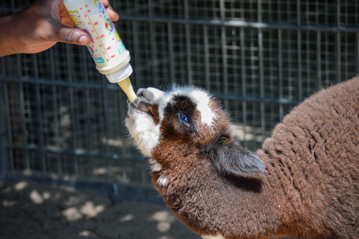 Obwohl sich die Wilhelma sehr über den Nachwuchs freut, gibt es auch eine traurige Nachricht. Es kam zu Geburtskomplikationen bei Muttertier Daphne. Zwei Tage nach der Geburt von Jungtier Nora verstarb ihre Mutter an den Verletzungen der Geburt. Das braune Fohlen mit der weißen Stirn wird deshalb mit der Flasche gefüttert und von den Pflegern mit der Hand aufgezogen. Das kleine Alpaka ist jedoch auch ohne Mutter Daphne gut in die Herde aufgenommen worden.