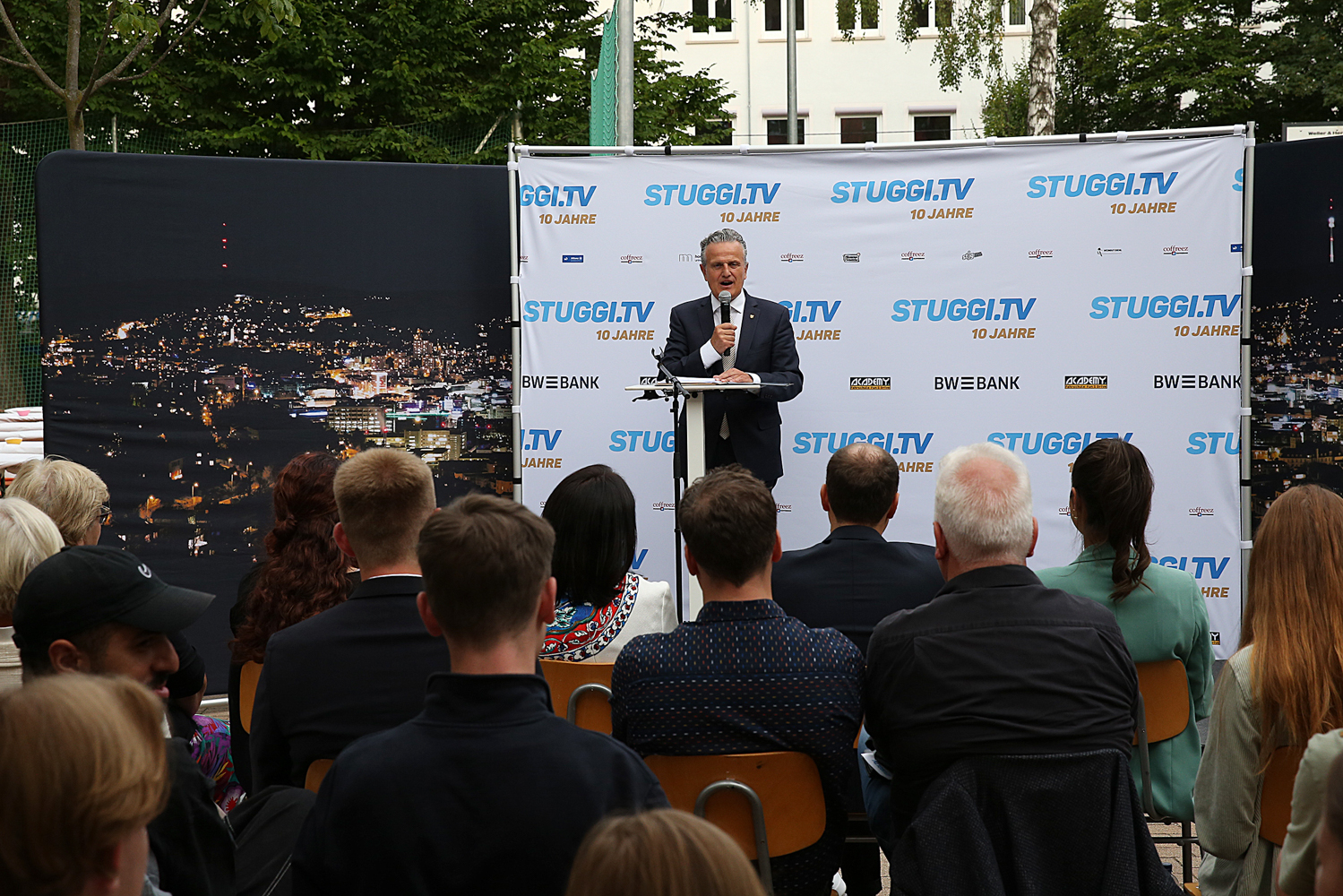 Die große Jubiläumsparty ist vorbei - doch viele schöne Eindrücke bleiben. Der zehnte Geburtstag von STUGGI.TV wurde im Außenbereich des Jugendhaus Mitte gefeiert. Bei dem Event dabei waren Landtagspräsidentin Muhterem Aras (Grüne) und Stuttgarts Oberbürgermeister Frank Nopper (CDU). Neben weiteren Gästen aus der Politik und Stadtgesellschaft waren aktuelle und ehemalige Mitarbeiter des Senders geladen. Hier gibt es nun die große Fotogalerie zur Jubiläumsfeier.