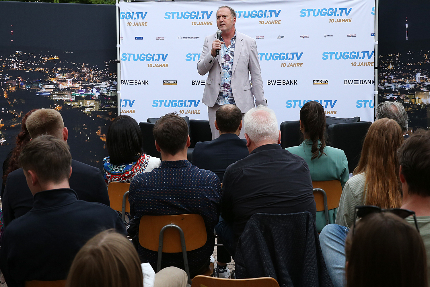 Nach dem Festakt wurde auf STUGGI.TV angestoßen. Bei guter Musik mit einigen Drinks wurde bis tief in die Nacht ausgiebig gefeiert, getanzt und das ein oder andere Schwätzchen gehalten. Dabei trafen prominente Gäste sowie ehemalige und aktuelle Mitarbeiter aus zehn Jahren STUGGI.TV-Geschichte aufeinander. Bei ausgelassener Stimmung und einer fröhlichen Atmosphäre hat der bekannte Fotograf Wolfgang List viele schöne Eindrücke festgehalten. Besonders beliebt war die STUGGI.TV-Fotowand.