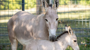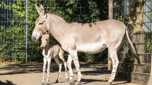 Drolliger Neuzugang bei den Somali-Wildeseln: Stute Sina hat Nachwuchs bekommen. Die Freude über die Geburt des kleinen Fohlens Robert ist besonders groß, da er einen wichtigen Anteil zum Erhalt seiner Art beiträgt. Denn mit einem geschätzten Bestand von maximal 600 ihrer Art stehen die Somali-Wildesel auf der Schwelle zum Aussterben.