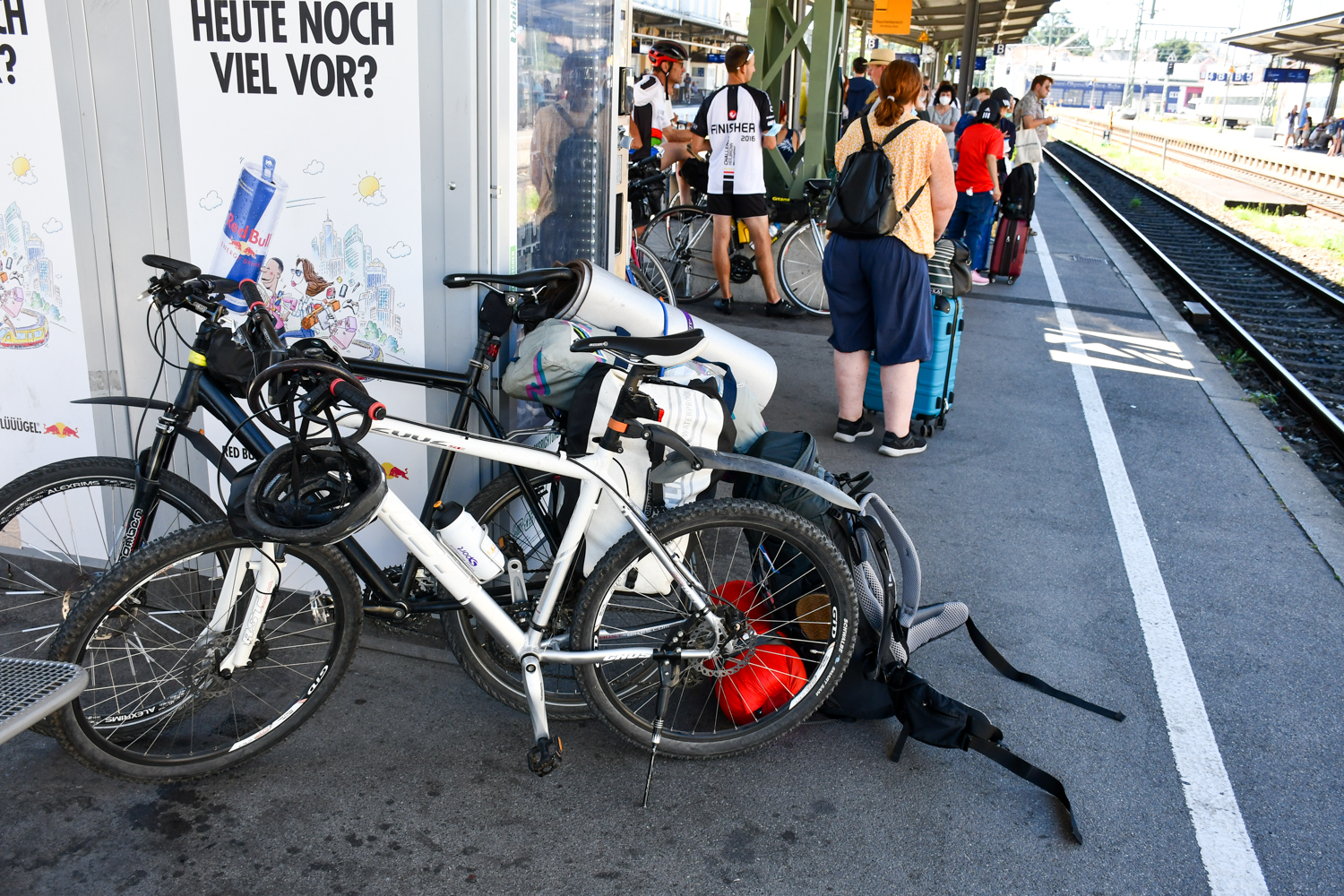 Der Zug fährt in den Bahnhof ein und schon formieren sich Menschentrauben um die Türen. Zu diesem Zeitpunkt denke ich schon, dass es wieder ein Kampf um die Sitzplätze wird, doch erstaunlich gut habe ich mir wieder einen der Sitzplätzen sichern können. Ich weiß nicht, ob ich im Fahrradabteil gelandet bin, doch auffällig viele Passagiere schieben ihr Fahrrad mit in den Wagen. Sie versuchen irgendwie die Räder so gegen die Sitze zu lehnen und zu verkeilen, dass sie nicht mehr umfallen können. Das klappt nicht bei allen. Dafür ist bei diesem Regionalzug das WLAN deutlich besser und die Signalstärke reicht sogar aus, um relativ schnell durchs Netz zu surfen. Allerdings funktioniert bei diesem Zug auch nicht alles: Die Anzeigetafel, auf der die nächsten Haltestellen angezeigt werden, ist kaputt. Man muss sich also anderweitig orientieren. Kurz vor dem Hauptbahnhof kommt der Zug dann plötzlich zum Stehen. Wie sich im Nachhinein herausstellt, haben sich Personen ins Gleisbett verirrt. Nach gut zweieinhalb Stunden Fahrt fährt der Regionalexpress mit einer Verspätung von 15 Minuten in den Stuttgarter Hauptbahnhof ein.