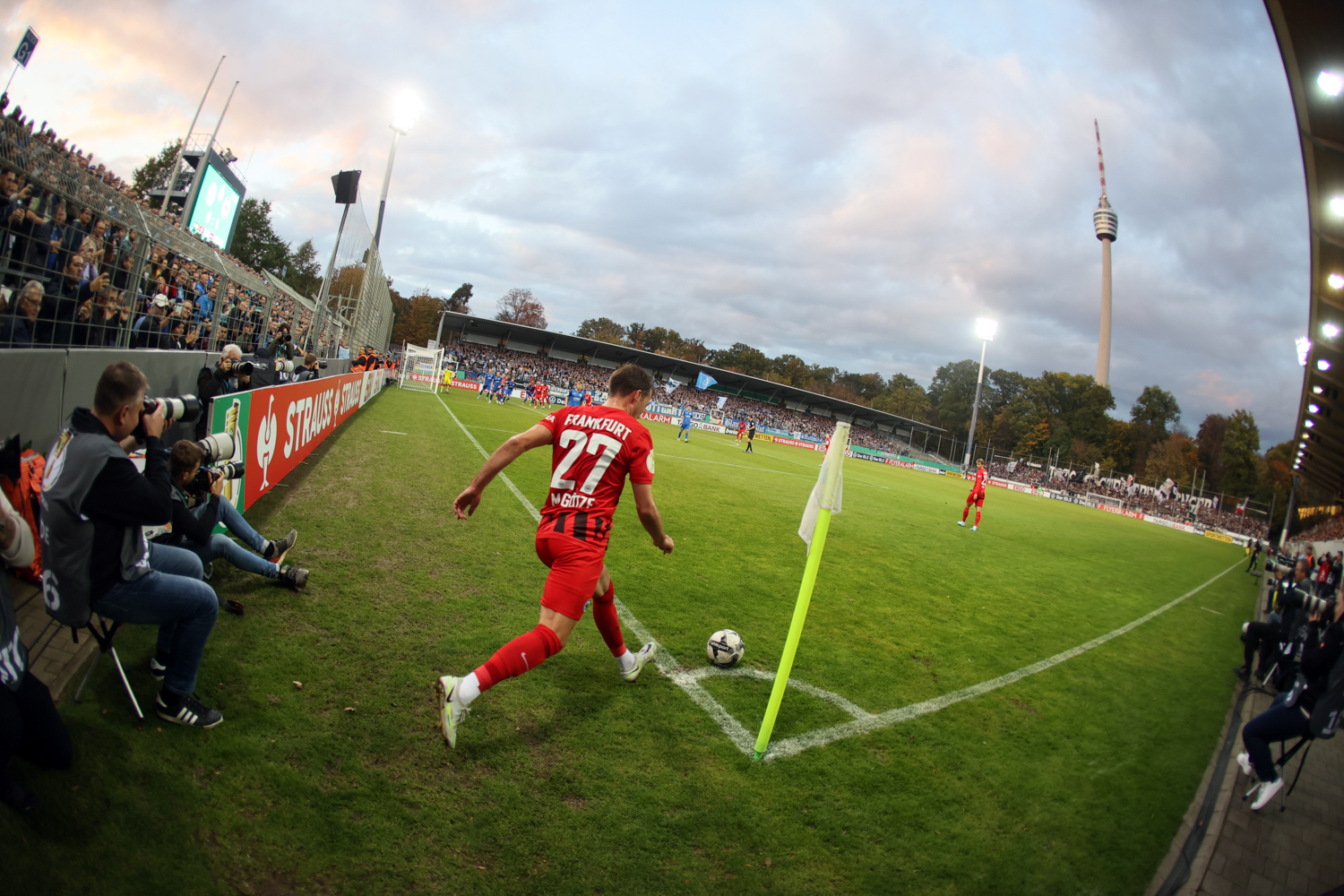 Der Oberligist Stuttgarter Kickers ist am Dienstagabend in der zweiten Runde des DFB-Pokals gegen Eintracht Frankfurt ausgeschieden. Der Champions-League-Teilnehmer aus Hessen landete erwartungsgemäß einen ungefährdeten 0:2-Auswärtssieg. Dabei zeigten die Blauen insbesondere in der zweiten Halbzeit einen couragierten Auftritt und schnupperten kurzzeitig am Anschlusstreffer. Wir zeigen euch die besten Bilder vom Pokalabend aus Degerloch.