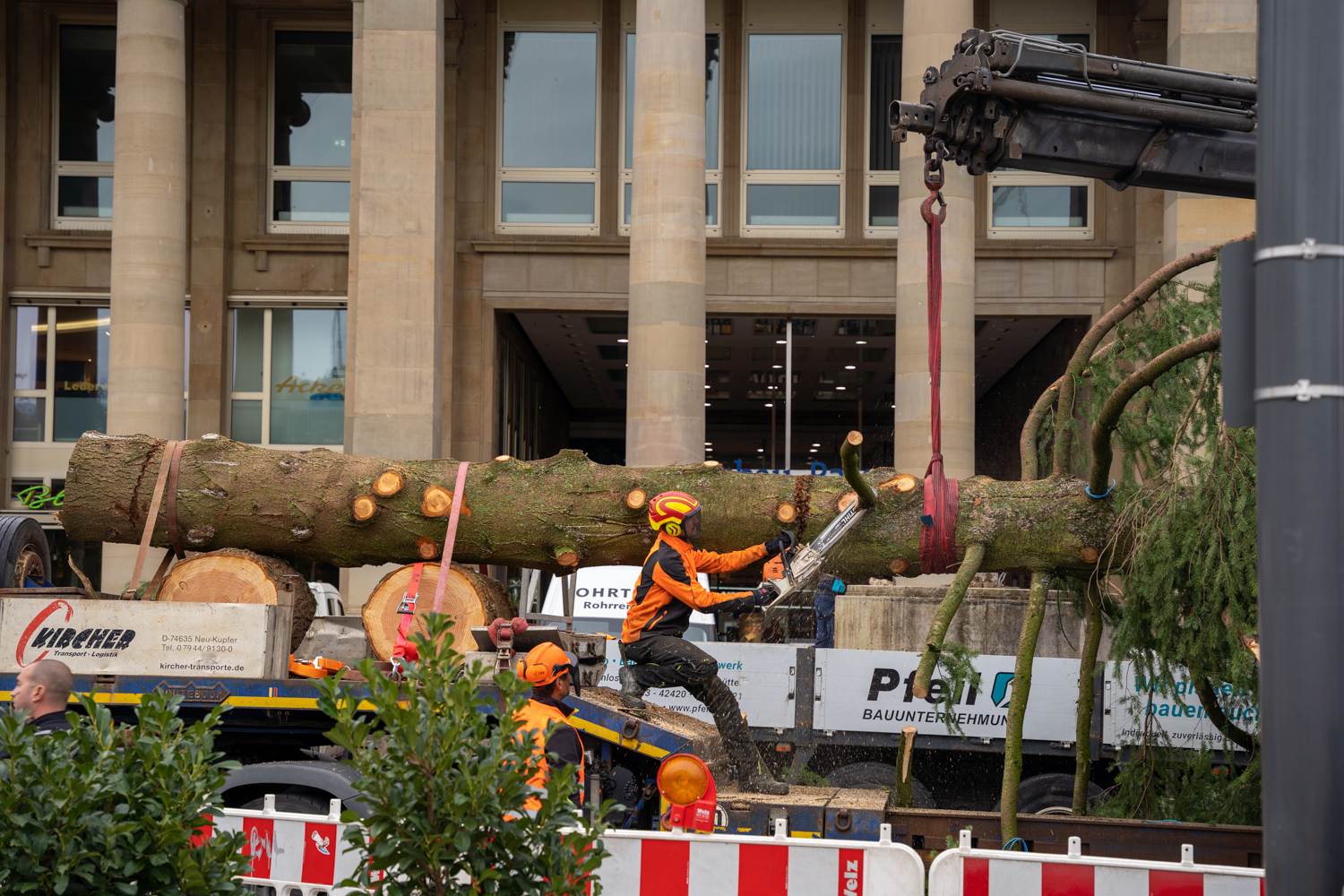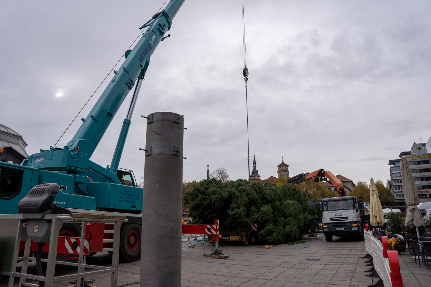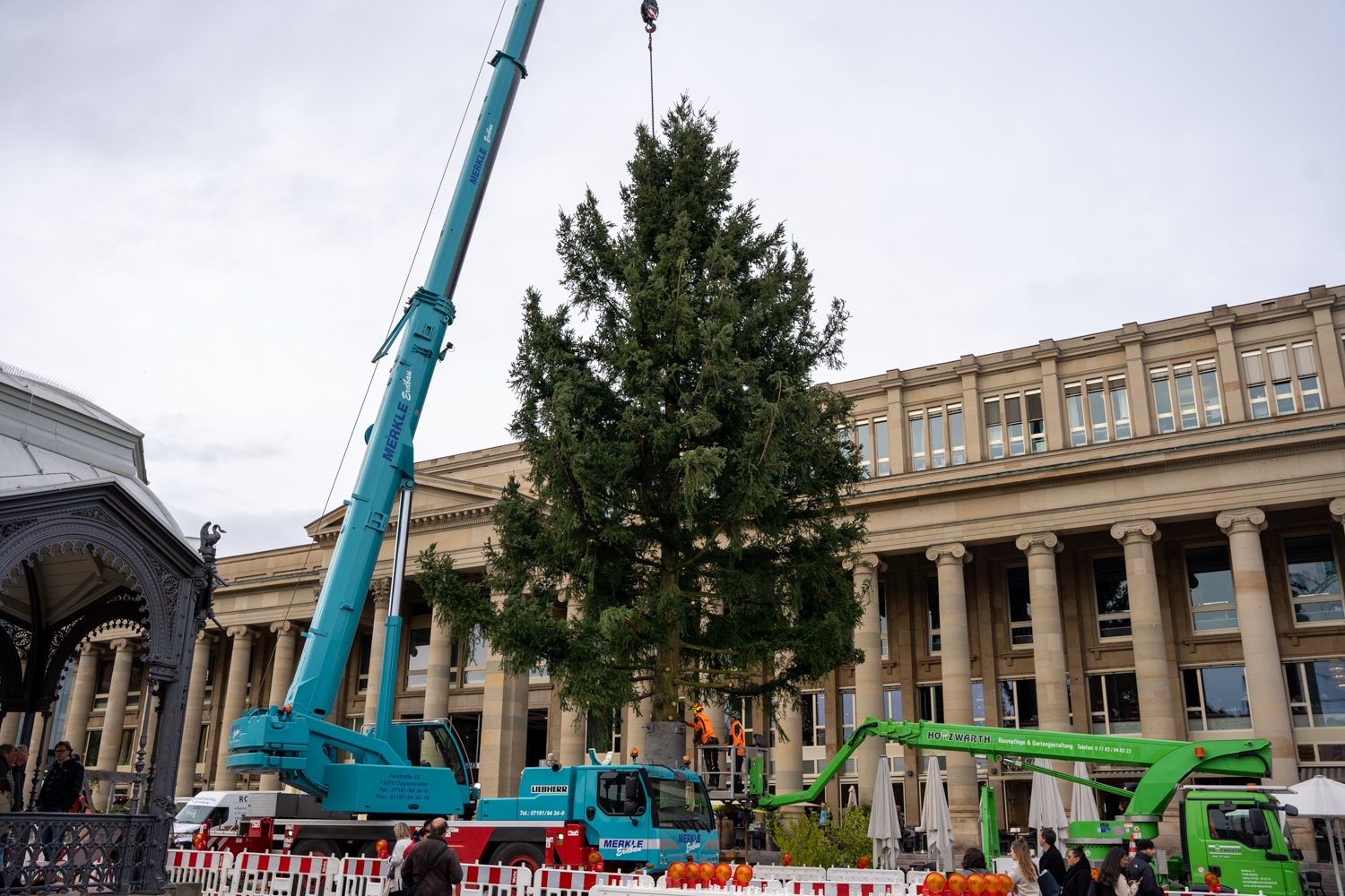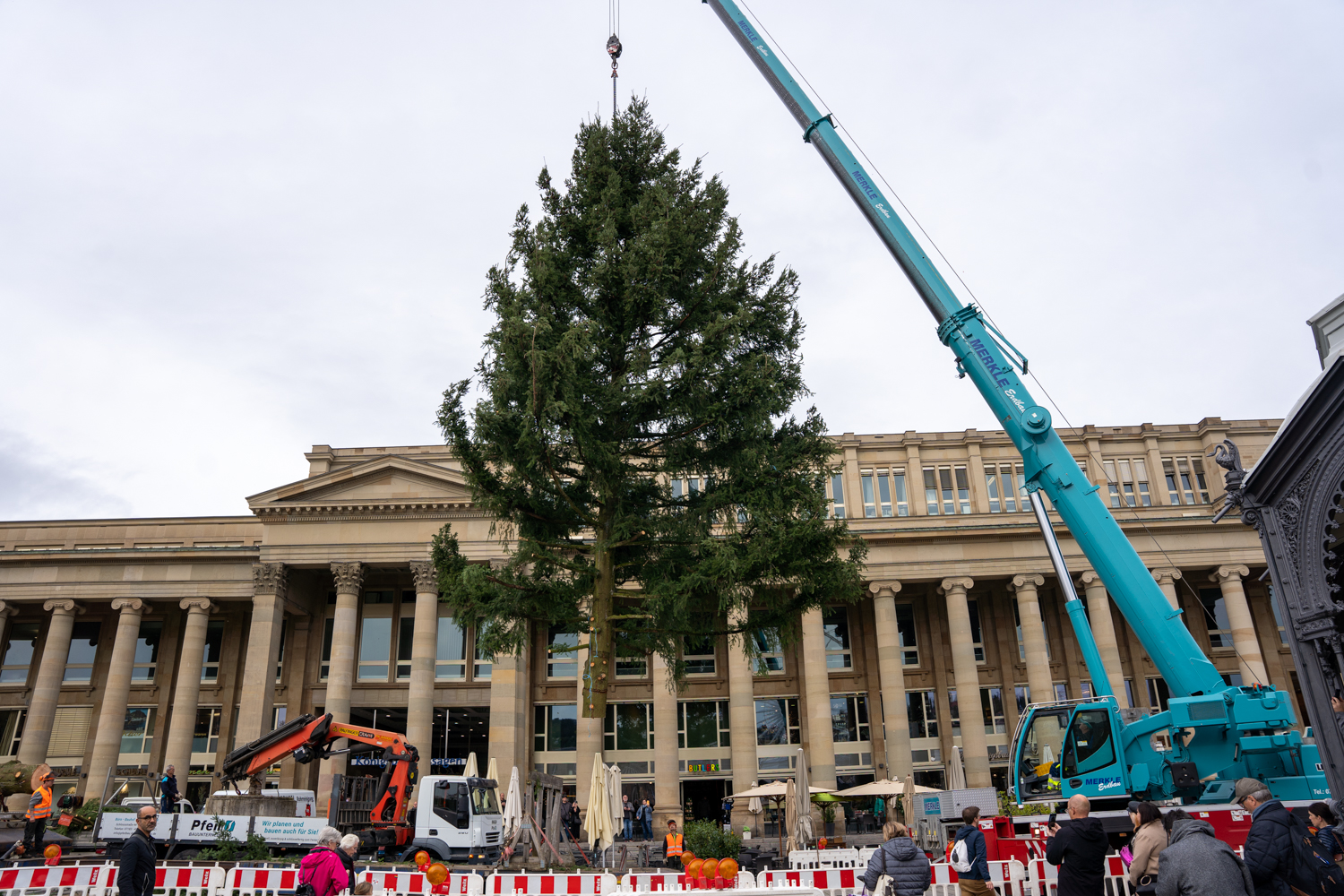 Die Adventszeit ist eingeläutet: Am heutigen Freitag wurde der große Weihnachtsbaum auf dem Schlossplatz aufgestellt. In den nächsten Tagen wird die 22 Meter hohe Weißtanne noch hübsch geschmückt und soll dann für weihnachtliche Atmosphäre in der Innenstadt sorgen. Mit dem Start des Weihnachtsmarktes Ende November soll Stuttgart dann trotz Energiekrise wieder zur stimmungsvoll leuchtenden Weihnachtsstadt werden.