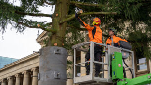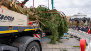 Fotogalerie: Der Weihnachtsbaum auf dem Schlossplatz steht