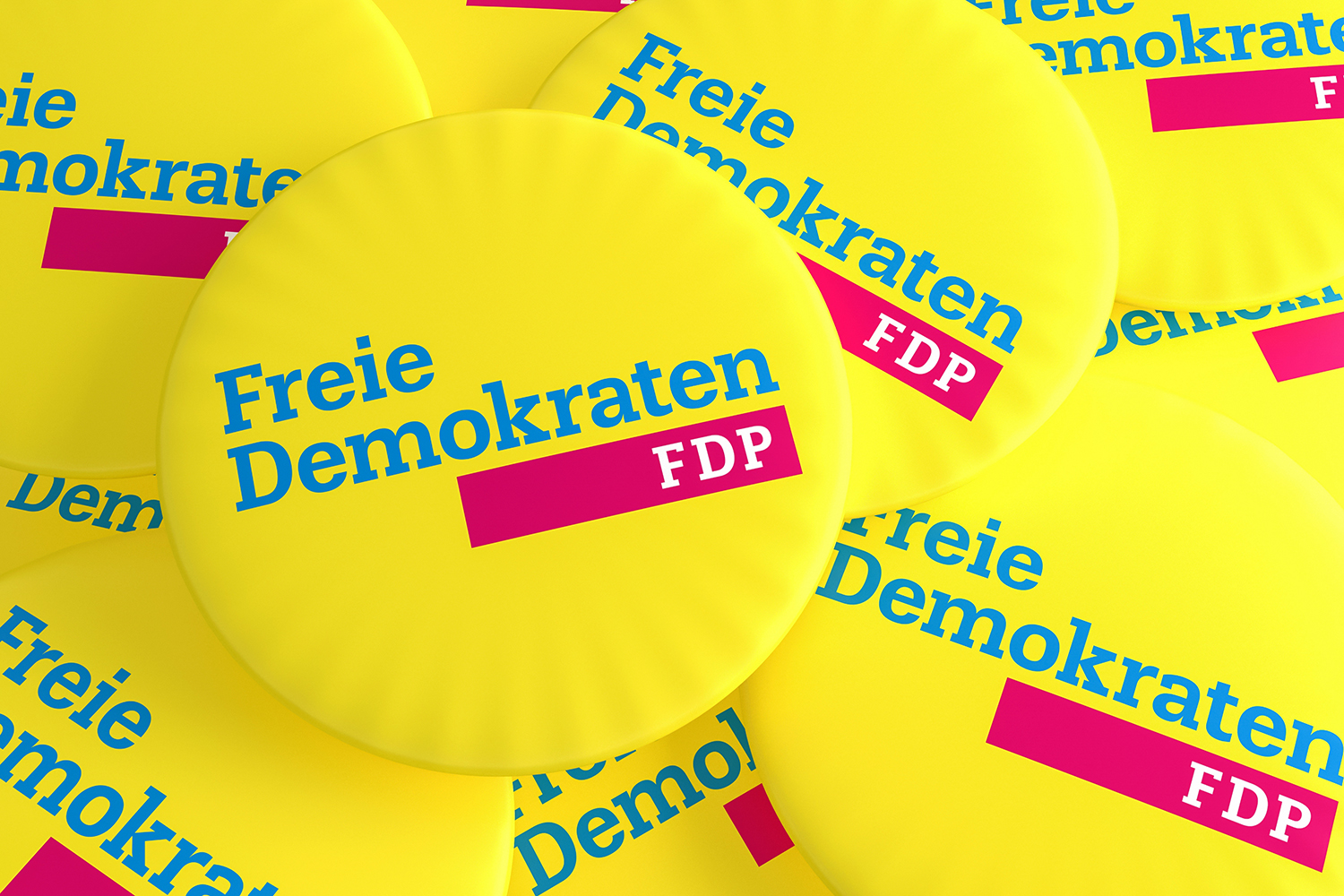 German Election Politics Badges Concept: Pile of FDP Buttons, 3d illustration