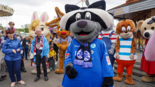 Als Gastgeber freuten sich das Frühlingsfest-Maskottchen „Wasenhasi“ und seine Freundin „Hasi“ über viele bekannte Maskottchen-Freunde aus der Umgebung: Allen Schwaben bekannt waren „Äffle“ und „Pferdle“. Von den MHP-Riesen aus Ludwigsburg angereist kam „Lurchi“. Und auch die Fußballer-Maskottchen „Fritzle“ vom VfB, „Paule“ vom 1. FC Heidenheim und „Waldi“ von den Stuttgarter Kickers besuchten den Canstatter Wasen. Neben vielen weiteren Maskottchen dürften auch „Johnny Blue“ vom Handball-Bundesligisten TVB und „Carlotta“ vom Mercedes-Benz-Museum nicht fehlen.