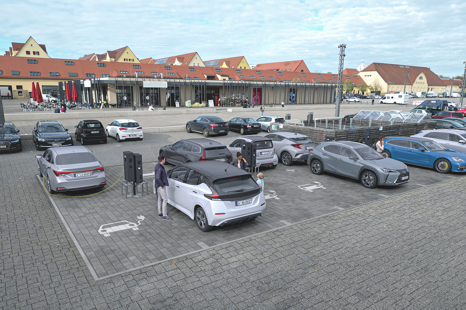 Das erste Parkfeld soll mit 16 AC-Ladepunkten ausgestattet werden. (Foto: Stadtwerke Stuttgart/LINK3D)