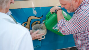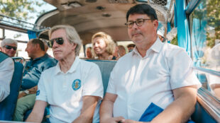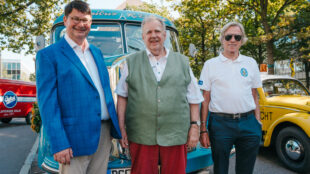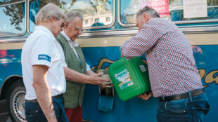 Aus bayrischen Gefilden ist am Freitagvormittag der bekennende Verbrenner-Liebhaber Leopold Prinz von Bayern angereist. Vom Stadtpalais ging es mit einem Oldtimer-Bus zum Schloss Solitude. Der Bus wurde bei der Fußball-WM 1954 von der Deutschen Nationalmannschaft genutzt. Auch der Prinz ließ es sich nicht nehmen, die Oldtimer mit E-Fuels zu betanken.