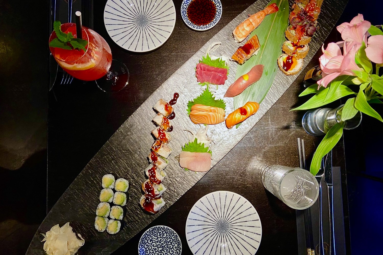 Wir haben uns für die Sushi-Platte “Couple N14” für zwei entschieden. Auf einer großen schwarzen Steinplatte wird von jeder Sushi-Art etwas serviert: verschiedene Nigiri, Avocado Maki, dreierlei Sashimi, eine Inside-Outside-Roll sowie eine frittierte Rolle mit Lachs. Jedes einzelne Sushi hat super gut geschmeckt. Vor allem die frittierte Rolle sowie das Sashimi waren unsere beiden Favoriten. Es war zu schmecken, dass für das Sushi hochwertiger Fisch verwendet wurde. Wir waren vom Geschmack begeistert. Wenn man sich im Bereich Sushi mal etwas besonderes gönnen will, ist das die richtige Adresse.