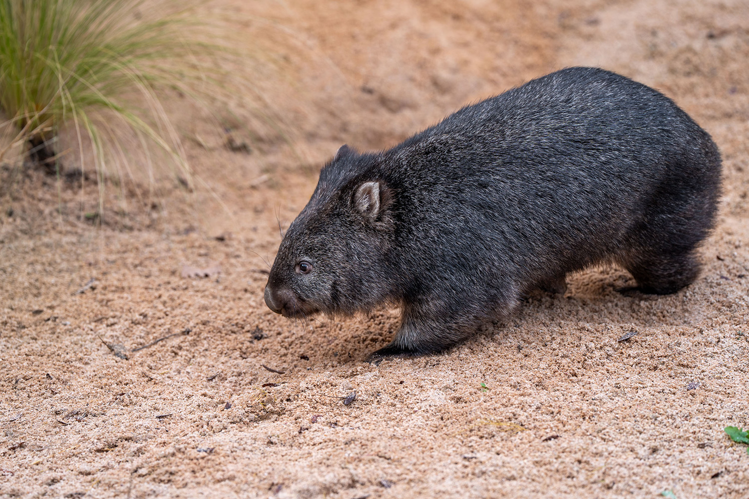 Wegen ihres gedrungenen Aussehens werden die Wombats auch „Plumpbeutler“ genannt. Charakteristisch sind ihre kurzen Beine und das Stummelschwänzchen. Sie können ungefähr einen Meter lang werden und wiegen bis zu 50 Kilo. Normalerweise leben sie im Süden Australiens und auf Tasmanien. Außerdem sind die Beuteltiere dämmerungsaktiv: „Die nun in der Wilhelma lebende Unterart kommt mit kühlen Temperaturen in unseren Wintermonaten sehr gut zurecht“, so Volker Grün, Leiter des Fachbereichs Zoologie. Auch in Tasmanien könne im Winter durchaus Schnee fallen.