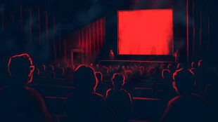 A minimalistic representation of the thrilling experience of a horror film festival on sale AI generated illustration