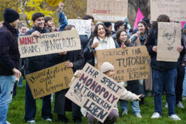 Studierende setzten sich während der Demo mit ihren selbstgebastelten Plakaten für die Sicherung der Hochschulfinanzierung ein. (Foto: STUGGI.TV)