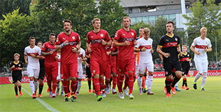 Einstimmung auf die neue Saison: Alexander Zorniger versammelt die gesamte Mannschaft und stimmt die Spieler auf das anstehende Training ein.