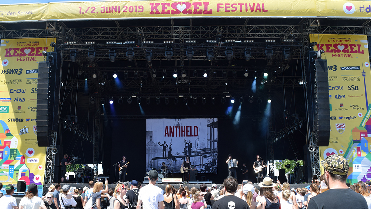 Sowohl Angebote wie Parkour, Slacklining und Skateboard-Pipes, wie auch der vom Marienplatz bekannte Übermorgen-Markt lockten bei strahlendem Sonnenschein eine breite Zielgruppe nach Bad Cannstatt. „Wir sind das erste Festival in Stuttgart, das so viele Interessen vereint und das gleichzeitig Nachhaltigkeit in den Mittelpunkt stellt“, sagt Christian Doll von der neu gegründeten Kessel Festival GmbH. Dieser Gedanke ließ sich auch im Essensangebot wiederfinden. Trotzdem ist der wichtigste Bestandteil des Kessel Festivals die Musik: „Wir haben ein nationales und internationales Programm“, so Geschäftsführer Christian Doll. Zum Festival-Auftakt am Samstag, 1. Juni war das Line-Up mit viel HipHop eher auf das jüngere Publikum ausgelegt: Auf der Hauptbühne herrschte unter anderem mit Antiheld, Maximo Park und Left Boy ein buntes Star-Aufgebot auf dem Cannstatter Wasen. Getoppt wird dies am Sonntag, 2. Juni mit eher poppigeren Acts wie Namika oder Max Giesinger.