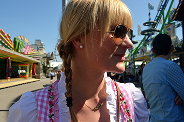 Natürlich ist eine Heidi-Frisur kein Muss zum Dirndl-Look. Offene Haare gehen auch, meistens bis es zu heiß wird. Dann kann man die Haare zu einem einfachen Knoten drehen und mit Klammer, Zopfgummi oder Haarnadeln feststecken.