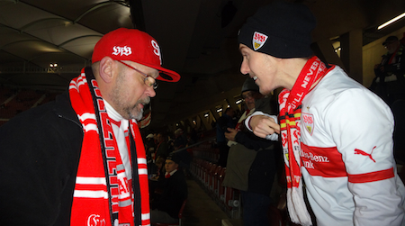 Aber der Gewinn der Meisterschaft ist für einen Fan des VfB Stuttgart kein Dauerzustand. Gerade in den letzten Jahren musste die rot-weiße Fangemeinde eine gewisse Leidensfähigkeit entwickeln. 2011 wäre die Mannschaft fast abgestiegen, konnte sich erst wenige Spieltage vor Schluss von den Abstiegsrängen retten. „Klar erlebt man schlechte Spiele. Aber als treuer VfB-Fan stehe ich auch hinter der Mannschaft, selbst wenn wir absteigen oder mal 0:6 verlieren.“