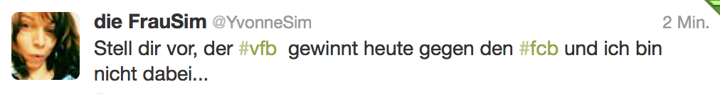 57 Min. VfB-Fan Yvonne wäre heute wohl lieber auch im Stadion gewesen. (Quelle: Twitter)
