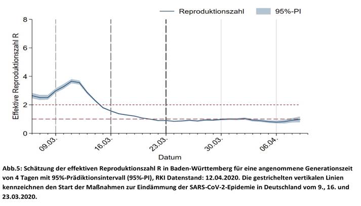 Die Entwicklung der Reproduktionszahl in Baden-Württemberg (Grafik: Ministerium für Soziales und Integration)