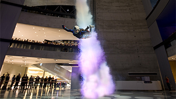 Das neue Angebot: Skydiving im Mercedes-Benz-Museum (Foto: Mercedes-Benz Museum)