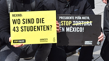 Im September 2014 wurden in Mexiko 43 Studenten verschleppt und bis zum heutigen Tag nicht wiedergefunden. Anlässlich des Staatsbesuches des mexikanischen Präsidenten Enrique Peña Nieto diese Woche veranstalteten die Amnesty Stuttgart Gruppen einen Smart Mob, um an diese grausame Tat zu erinnern und auf die Menschenrechtssituation in Mexiko hinzuweisen. Hintergründe und Bildmaterial zur Aktion seht ihr hier.