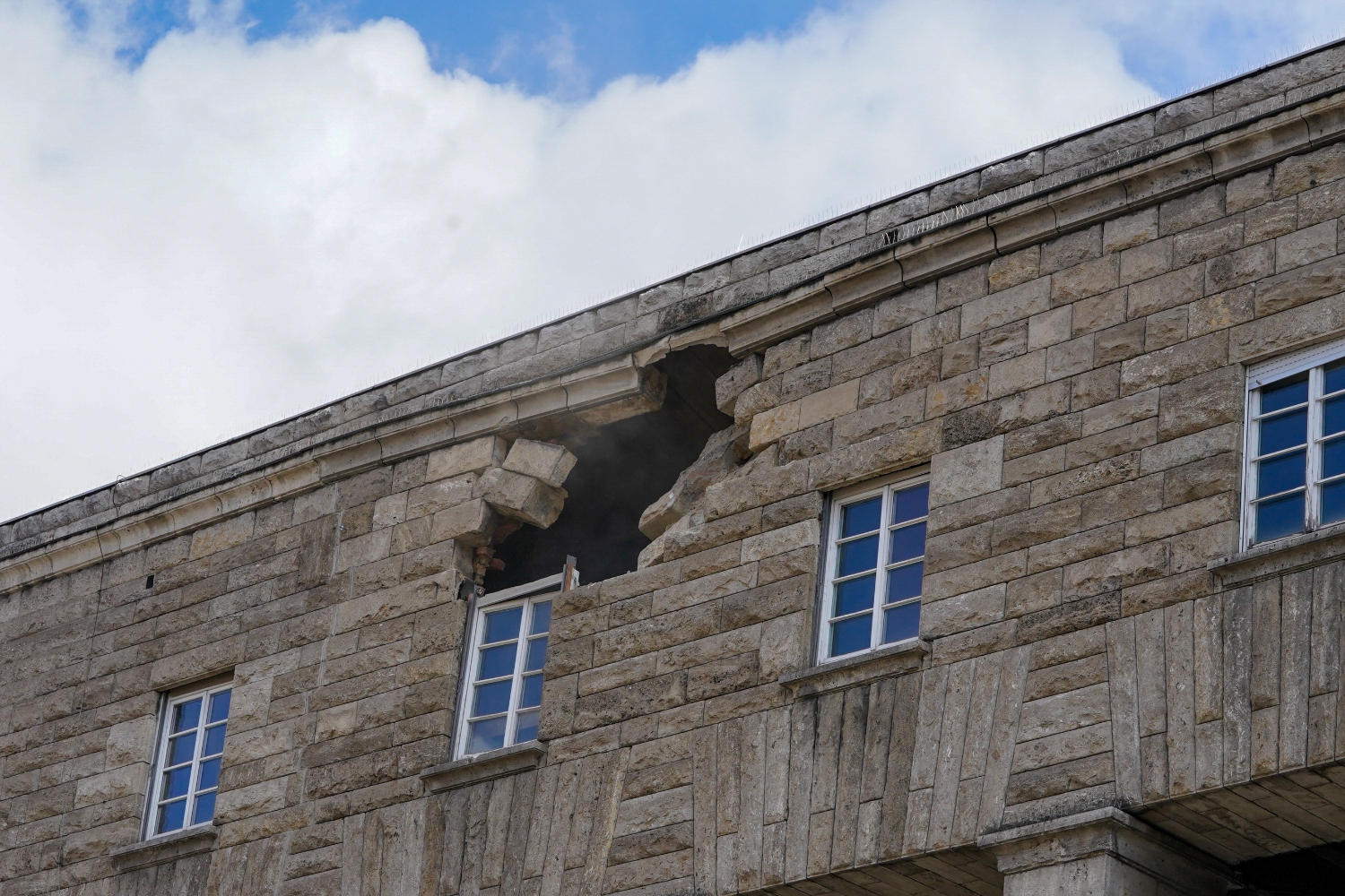 Das Loch in der Außenfassade des Bonatzbaus hat einen Durchmesseer von ca. drei Metern. (Foto: Andreas Rosar)