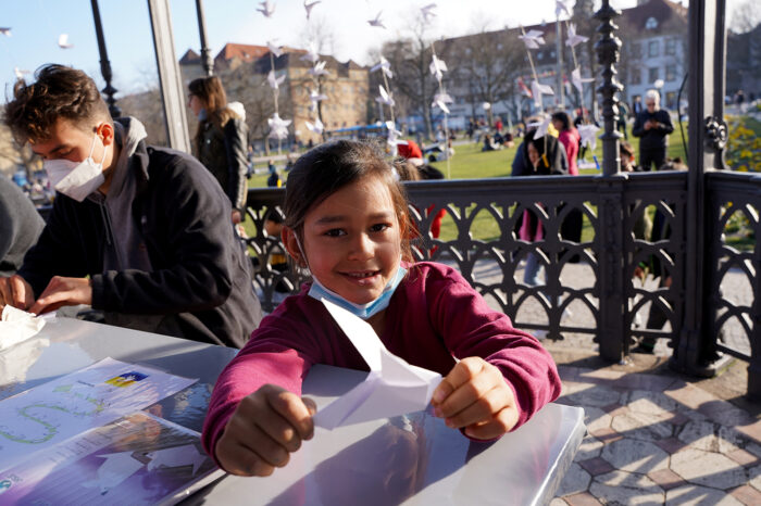 Friedenstauben für die Ukraine: Jugendhausgesellschaft sendet Friedenszeichen vom Schlossplatz