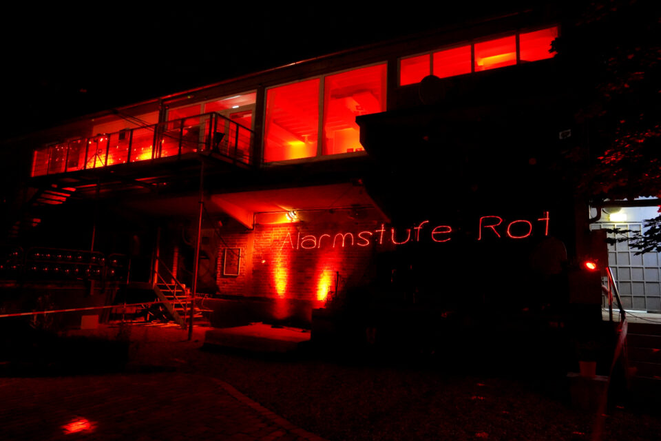 „Alarmstufe Rot“: Die Kulturinsel während der Night of Light 2021 in Stuttgart. (Foto: STUGGI.TV)