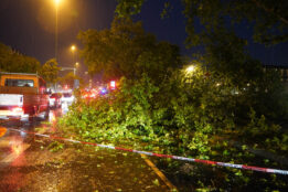 Zahlreiche Bäume sind verteilt durch die Stadtbezirke umgestürzt.