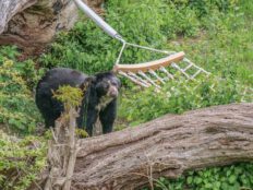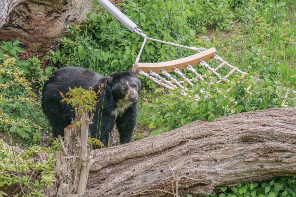 Das Brillenbär-Weibchen Cashu inspizierte auch eine riesige Hängematte. (Foto: Wilhelma Stuttgart)